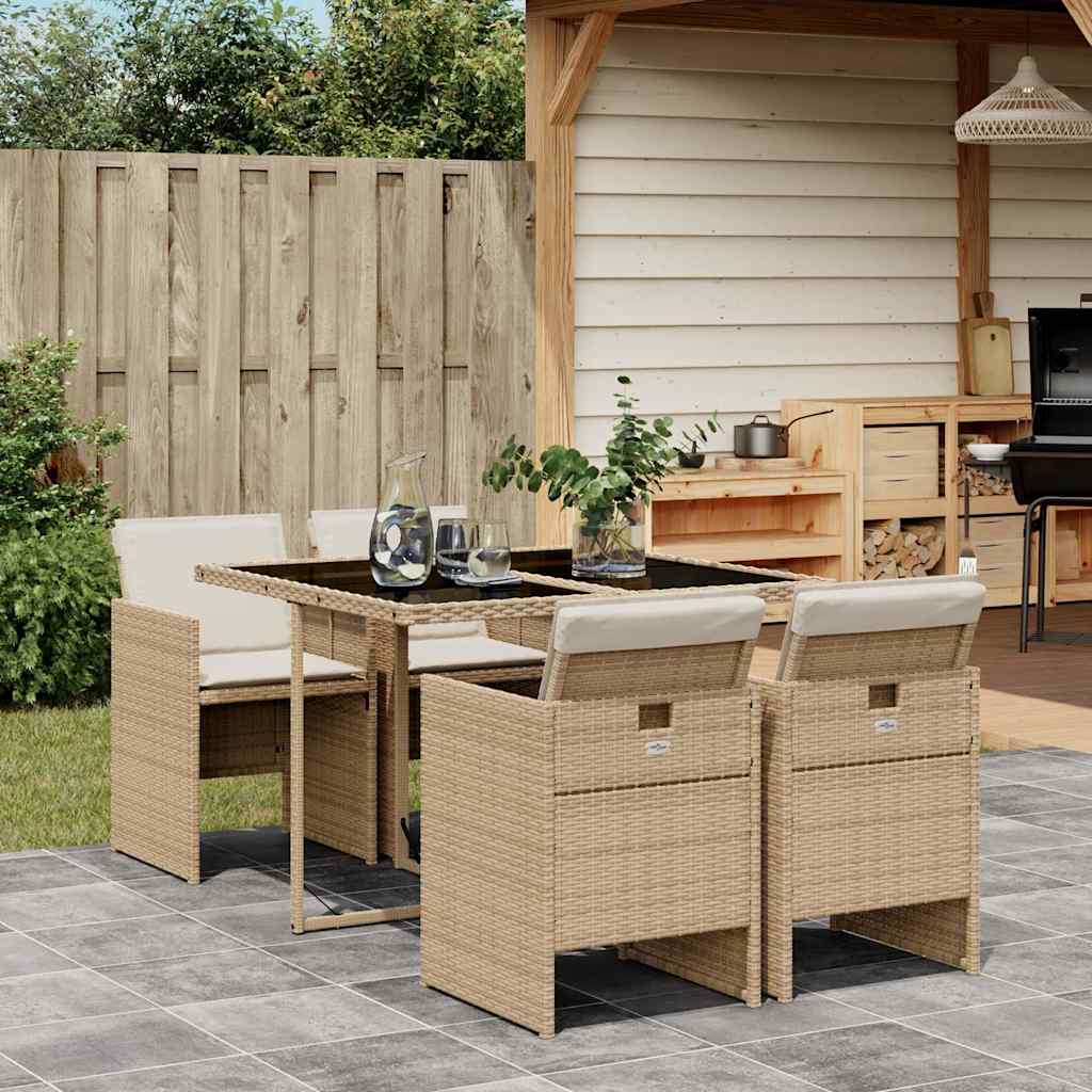 5 Piece Poly Rattan Garden Dining Set with Cushions